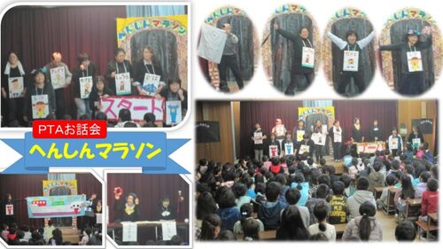 毎年恒例の「お話会」が、PTA研修図書部主催で行われ、大勢の児童が参加しました。 今年のお話は「へんしんマラソン」です。へんてこなマラソンが、へんてこな参加者によって行われました。優勝したのは誰だったのでしょうか? この「お話会」を見ようと…