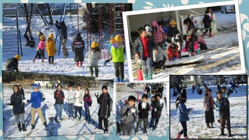 予定していた「なわとび集会」が、積雪のため再度の延期となり、保護者の皆様にはご迷惑をおかけしています。1月31日(火)に実施いたしますので、よろしくお願いいたします。 しかし、今日は久しぶりの積雪で、児童は大喜びでした。校内にもたくさんの雪…
