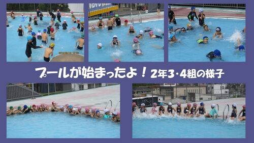 プールでの水泳・水遊びの授業が今日から始まりました。最初に利用したのはひかり・はるか学級で,その後1年3・4組,2年3・4組,6年生が活動しました。少し冷たいと感じる児童もいたようですが,楽しく行うことができたようです。水泳は苦手の児童も…