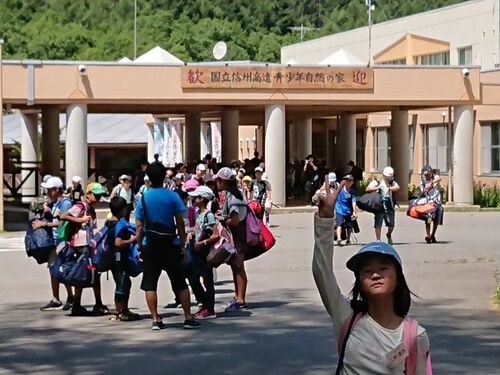 いよいよ最終日になりました。今日のメインは、壁飾り作りです。 (3日間過ごした自然の家ともお別れです!) (職員の方や船島小の皆さんに名和っ子猩猩を見ていただきました) (壁飾り作成中です!) (朝食の様子です) (朝の集い、ラジオ体操です)
