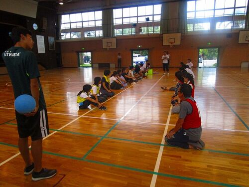 第19回東海市ドッジボ-ル大会につながる校内ドッジボール大会に備えて、名和小学校の先生たちの講習会が行われました。初めて赴任した先生も熱心に聞き入っていました。ルールの確認をした後、さらに実戦形式で実技講習が行われました。