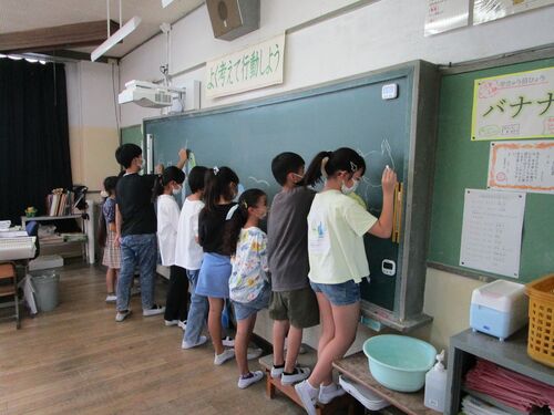 2年1組では名和っ子猩々の振り付けを子どもたちが話し合っていました。 2年1組オリジナルバージョンを作るそうです。 子どもたちが知恵を出し合ってさまざまな意見が出ていました。 完成が楽しみですね。