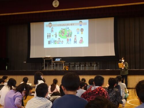「福祉」とは、「ふだんの くらしのなかの しあわせ」 社会福祉協議会の方をお招きして、来週予定している福祉体験教室のガイダンスを行いました。 これから、困っている人のために私たちにできることを学んでいきます。