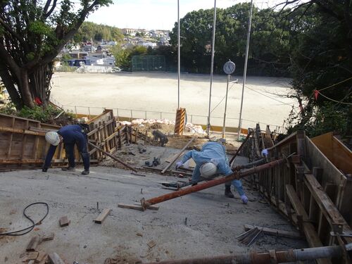 夏休みから始まった工事。 運動場への階段は、少しずつ姿を現し始めています。 完成が待ち遠しいですね。
