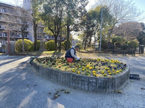 春に向けて花壇作りが進みます。 昨日は、緑化委員会の子どもたちが頑張っていました。 今日は、担当の先生が仕上げをしています。