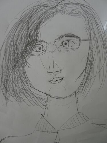 これは、昨日の授業の時に移した写真です。 下書きの段階です。でも、とっても上手です。 ペン書きをして、鉛筆の髪の毛の線がなくなっている人もありますが、本人そっくりです。 さて、誰かわかりますか?