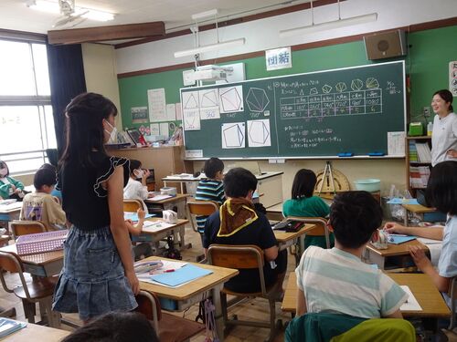 昨日も、このクラスの算数の様子をブログにあげました。 偶然にも、その続きの授業をやっていました。 「20角形の内角の和も出せそう!」 多角形の角度を全部足した答えが、角度はからなくても、簡単に計算できることに気付いたようです。