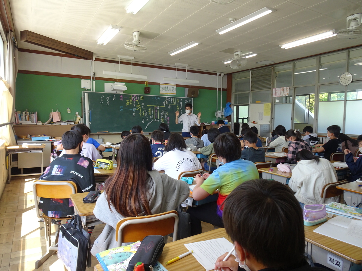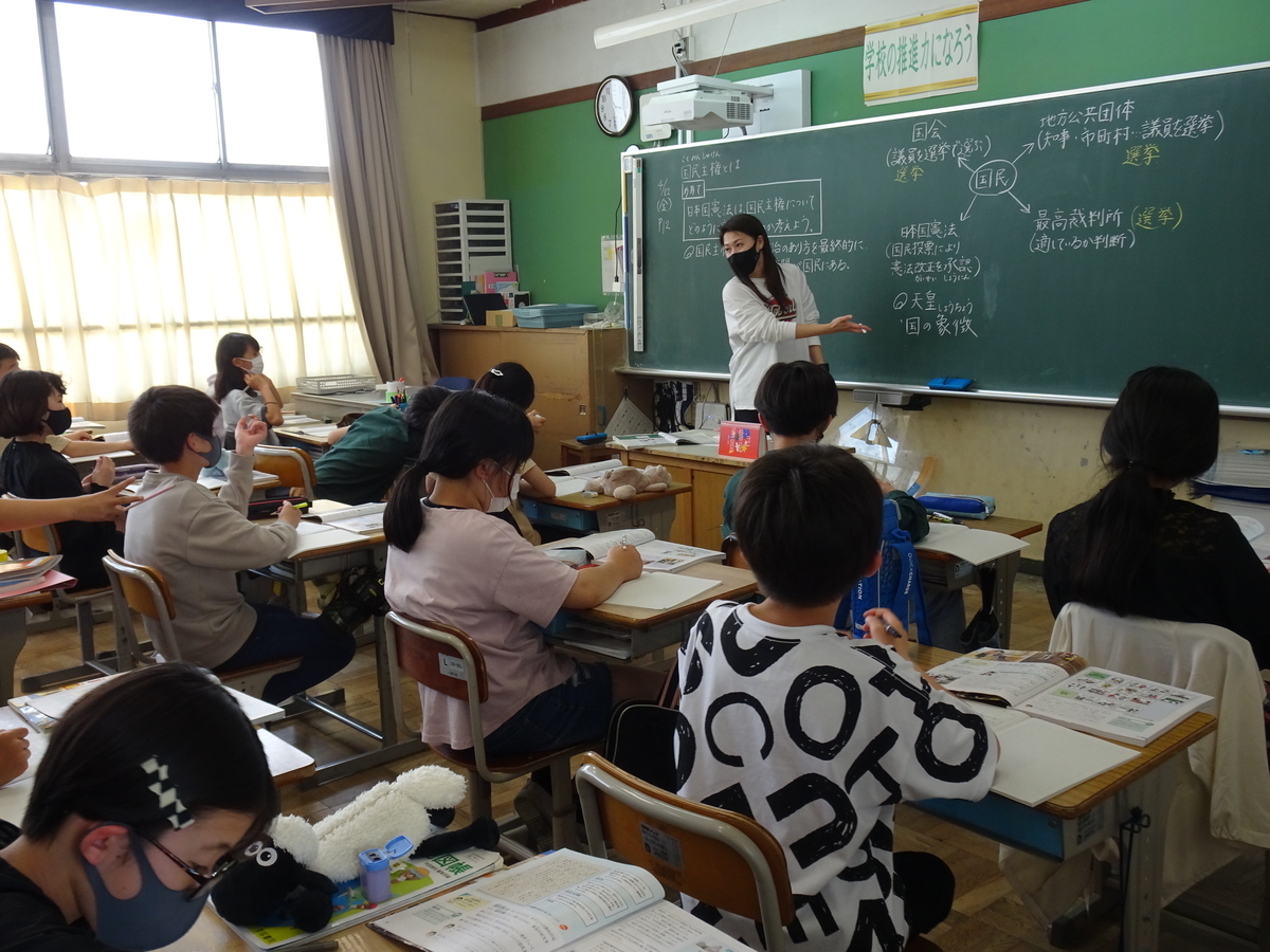 6年生は、学級閉鎖があったり、体調不良で担任がいなかったりしたため、担任が学級を入れ替わって授業を行いました。さて、これは何組の様子でしょうか?