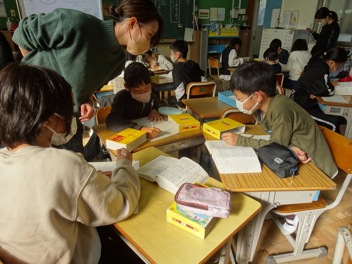 2022-11-24 11/24 4年生 国語 慣用句 「顔がひろい」ってどういうこと? 子どもたちの予想はズバリ「顔が大きいということ」 下の写真は、「顔がひろい」を絵で表現したところです。 でも、辞書で調べてみれば、その意味は全く違っていて……。 慣用句について、グループでしっかりと考えました。
