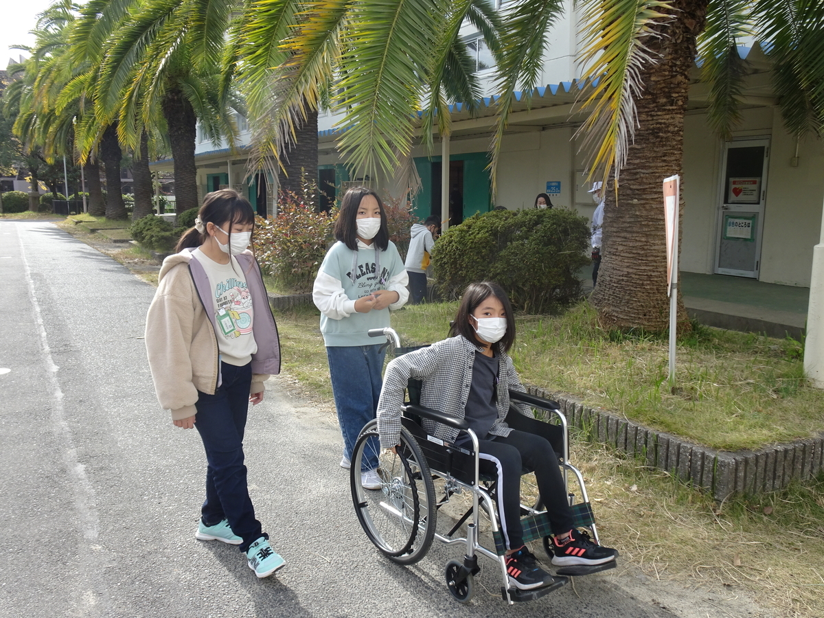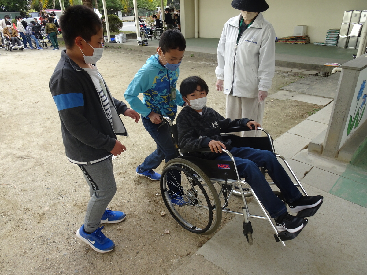 先週に続き、今日は5-1と5-4が福祉体験教室を行いました。