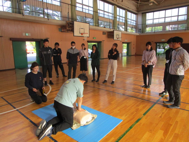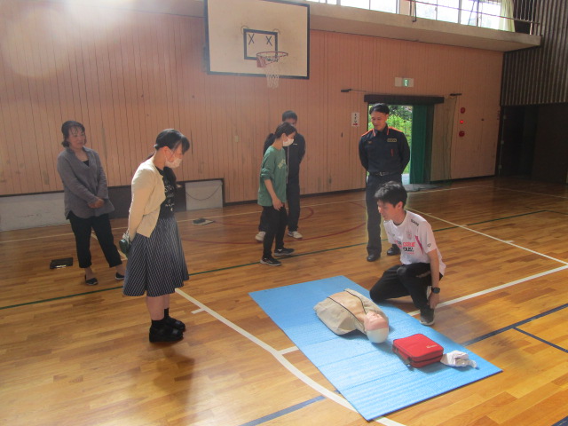 2023-05-09 5/9 救命救急講習会 もうすぐ水泳指導が始まります。 放課後、東海市消防本部から消防士の方をお招きして救命救急について学びました。 子どもたちがいざというときのために先生たちも勉強です。