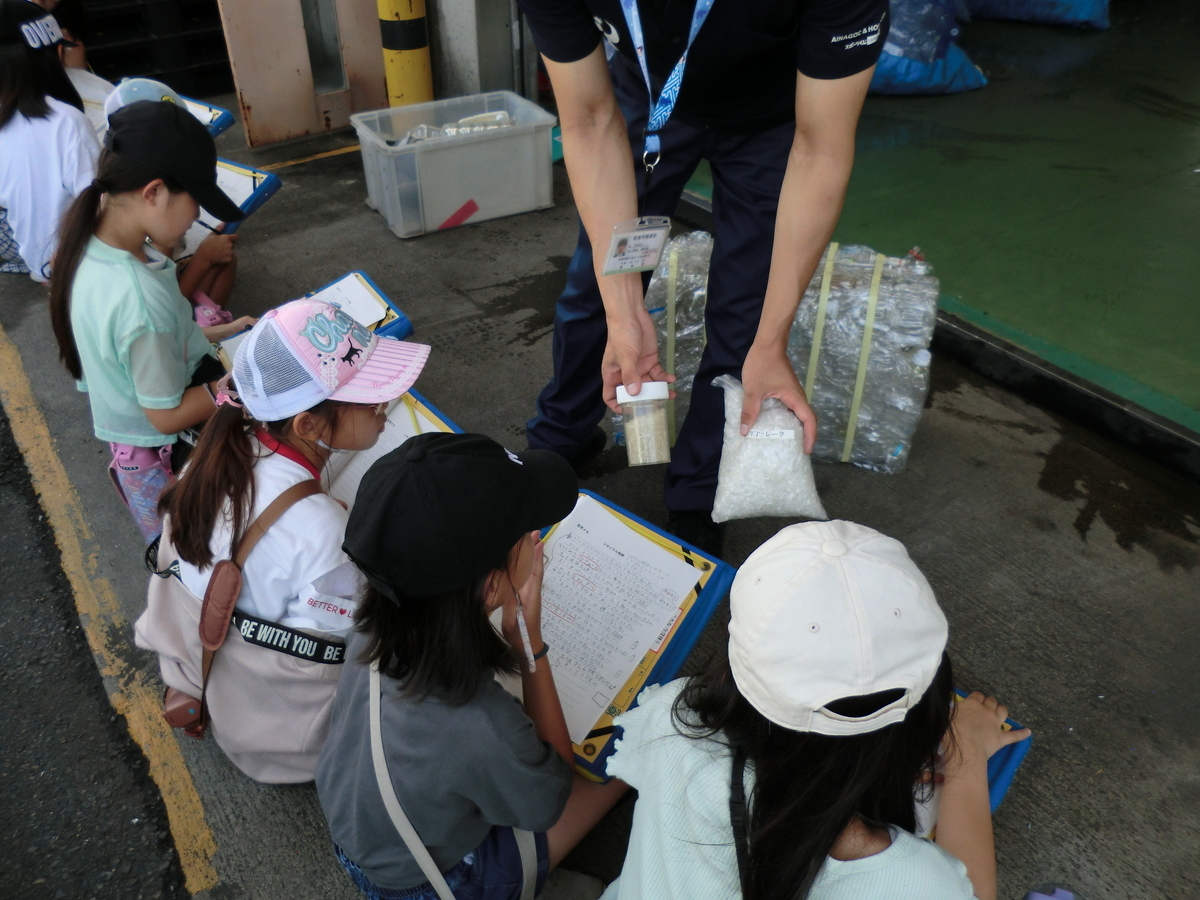 工場内の見学やセンターの方の話を聞き、一生懸命メモを取っていました。