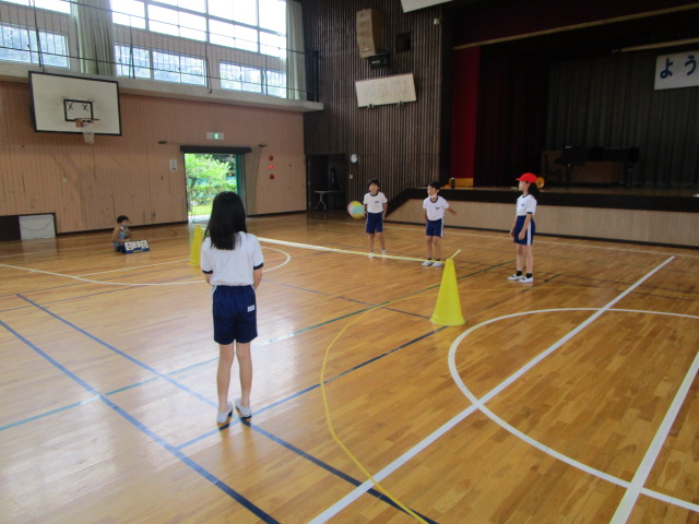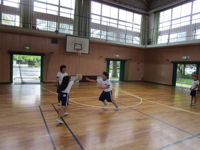 地面にボールを上手に叩きつけてパスをまわしていました。