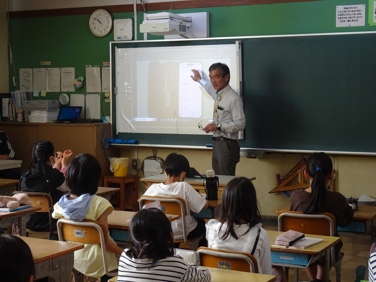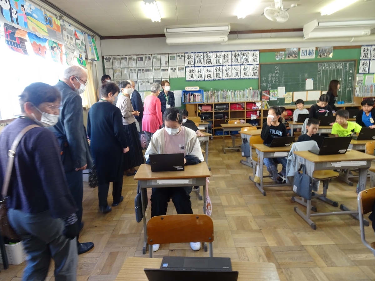 2023-10-24 10/24 民生・児童委員さんがいらっしゃいました これまで、感染症対策のため、地域のみなさまに学校へお越しいただく機会を作ることができませんでした。 今日は、民生児童委員の方にお越しいただき、子どもたちの様子をご覧いただきました。 コロナ前は、タブレットを利用した学習の様子はありませんでした。 数年の間の変化に、参観された方は驚いていらっしゃいました。