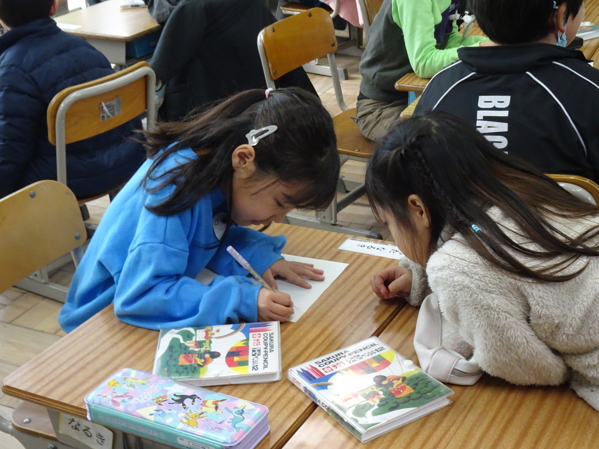 2024-01-19 1/19 1年 国語 ものの名まえ ものには名前があり、そしてそれらをまとめる言葉がある……。 今日は、おみせやさんごっこの準備をしながら、言葉をグループに分けたりまとめたりする学習をするようです。 おもちゃやさん、くだものやさん、おかしやさん……。 一番人気は?