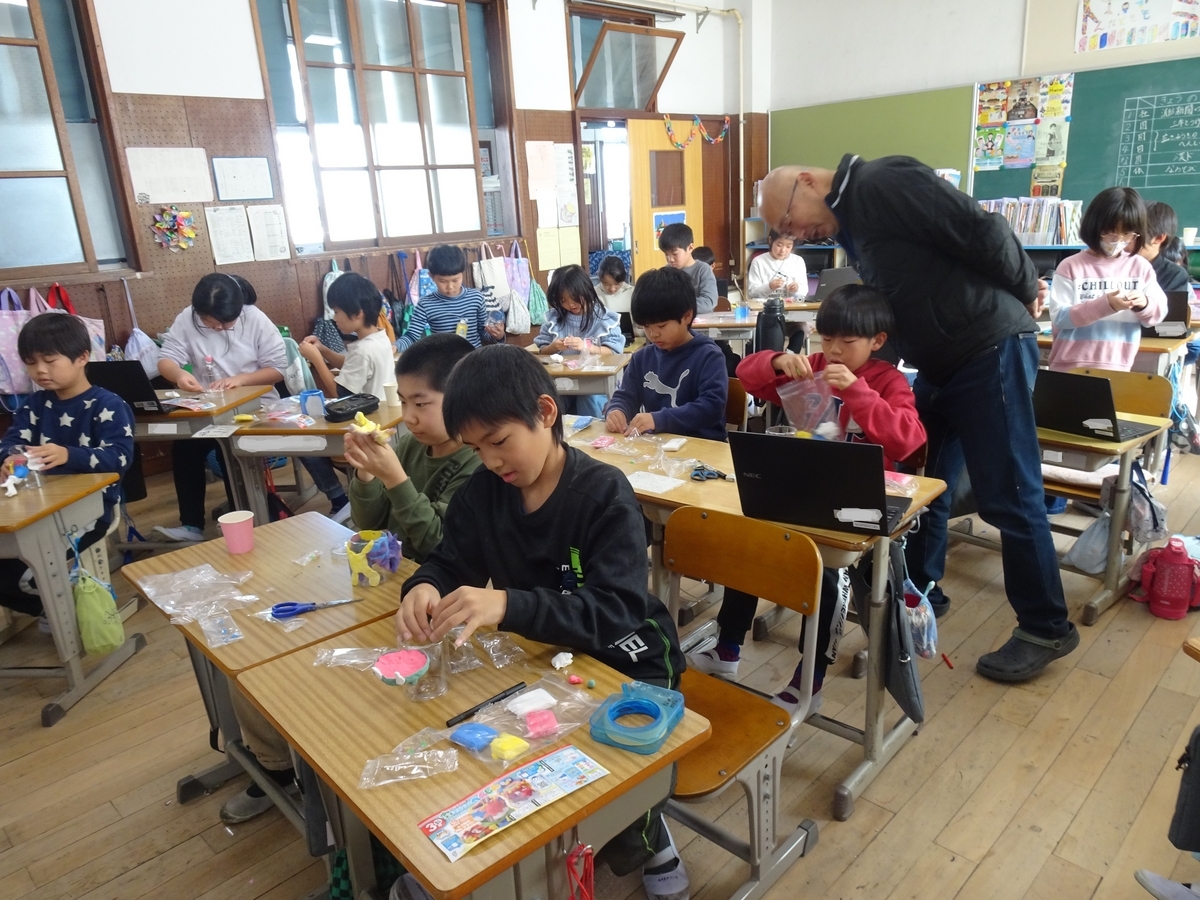 紙粘土は、形にする前に絵の具を練り込んでいます。