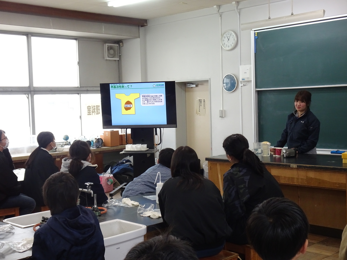 毎年、三洋化成の方にお越しいただいて、5年生を対象に出前授業を行っていただいています。