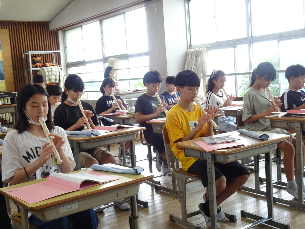 2024-07-09 7/9 6年 音楽 一学期を振り返り…… 今日は、一学期最後の音楽。 学習のまとめとして、一学期に練習した合唱やリコーダーを聞かせてくれました。 どの子も真剣そのものの表情が、とても印象的です。 1学期の大きな成長を感じる時間でした。