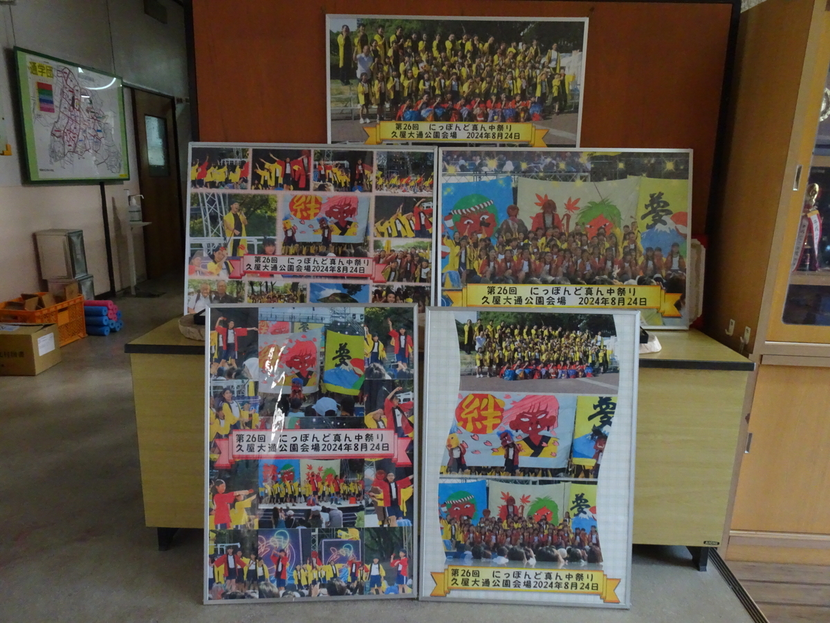 2024-09-05 9/5 どまつり写真館 にっぽんど真ん中祭りに参加した際の様子をパネルにしました。 普段は、放送室前の名和っ子猩猩コーナーや校長室に飾っているものです。 できたばかりですので、しばらくは玄関前にまとめて飾ります。 お立ち寄りの際は、ご覧いただけてらと思います。