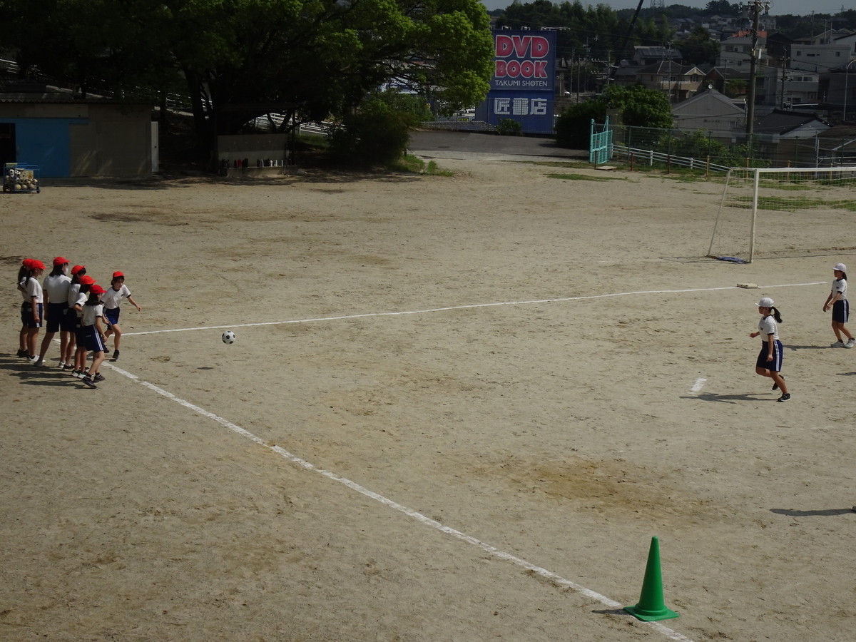 2024-09-05 9/6 6年 体育 キックベース 朝晩が涼しくなっても、日差しはまだ夏。 運動場では、キックベースをやっています。 まだ学習が始まったばかりのようで、ルールを簡単にして練習をしていました。 試合ができるようになるのは、もう少し先のようです。