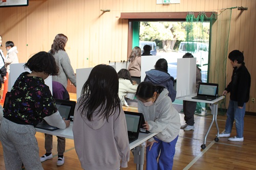 立ち会い演説の後は、タブレットを活用して投票を行いました。自分たちで選んだ児童会を中心として、学校を盛り上げてほしいと思います。