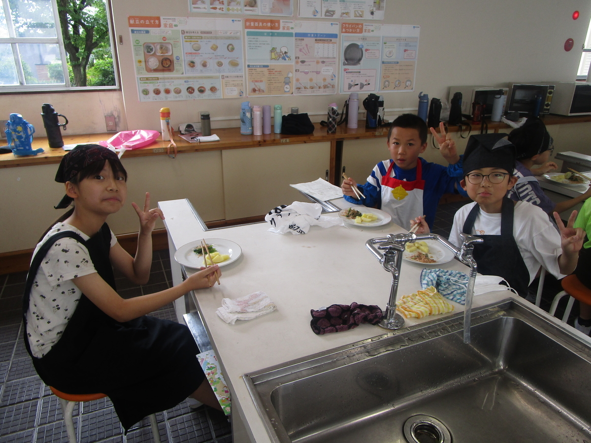 5年生の家庭科における調理実習が、今日も2学級で実施されました。これで4学級の全ての実習が終わりました。準備から調理、後片付け、振り返りまでが調理実習です。限られた時間での実習です。見通しをもち、同じ班の人と協力することが大切なことですね。これからも調理実習はありますし、林間学習でも、飯ごう炊飯があります。実習の度にレベルアップをして、全員が楽しめる実習になるといいですね。